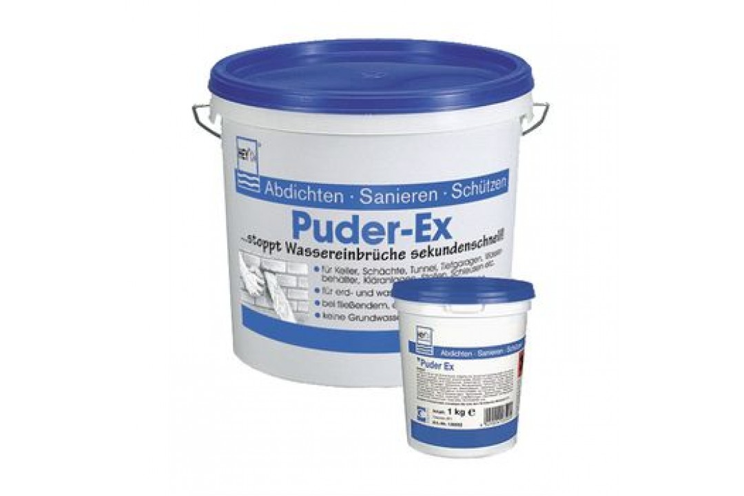 Закрепитель Puder-Ex - основанный на цементе закрепляющий раствор. Который застывает через несколько секунд после контакта с водой. После застывания Закрепитель Puder-Ex устойчив к морозу, солям оттаивания, внешним климатическим воздействиям и водонепроницаем на долгое время.