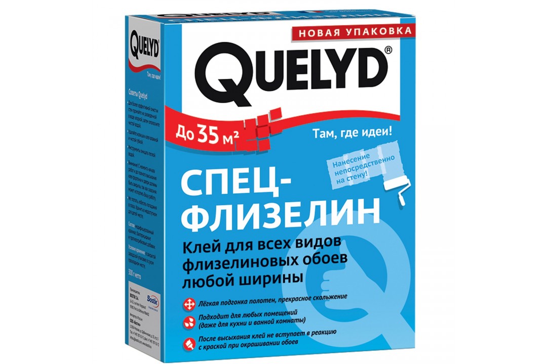 Специальный обойный клей QUELYD СПЕЦ-ФЛИЗЕЛИН - используется для наклеивания всех типов флизелиновых обоев любой ширины, в том числе под покраску.